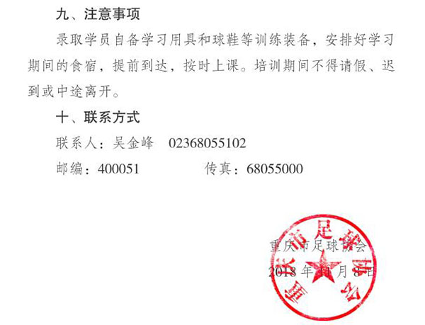 [重庆足协] 2018年 市级 第8期培训班报名通知