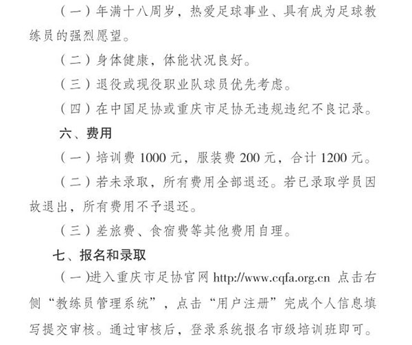 [重庆足协] 2018年 市级 第4期培训班报名通知