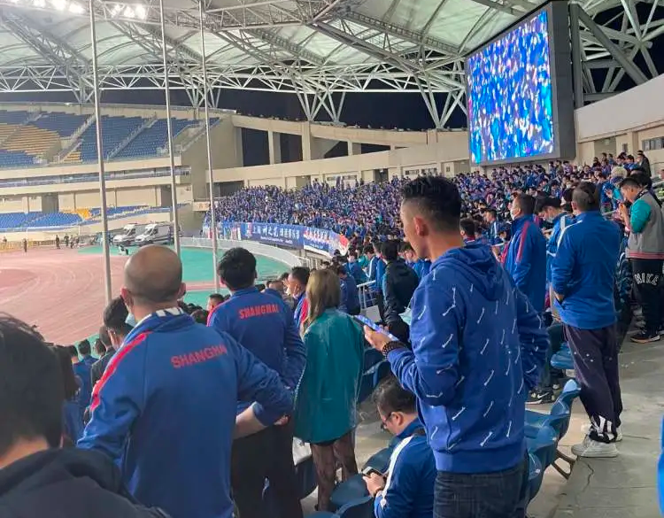 时隔一年多之后,球场终于又一次再现了蓝色的海洋。疫情发生后的一段时间内,中超联赛是在完全封闭的空场环境下进行的。去年联赛后半阶段,虽然有部分场次开放,但规模也比较小。而昨晚的京沪大战,官方公布的昆山体育中心的上座率达到了9700多人。而这其中,百分之九十是申花球迷。