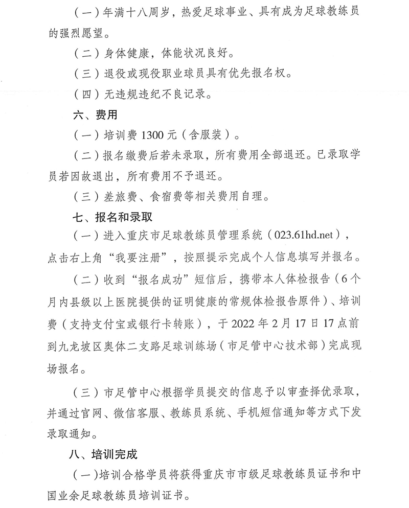 重庆市足协 | 2022年 市级 第3期培训班报名通知